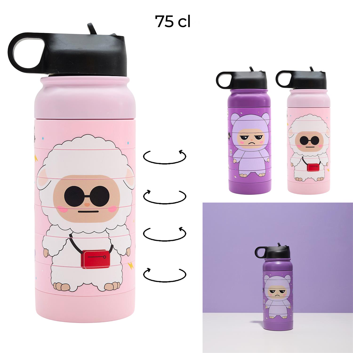 Buvez avec style grâce à cette bouteille grande capacité 75 cl au design Gromimis trop craquant ! Son originalité ? Les anneaux rotatifs façon puzzle qui permettent d’assemblé le personnage. Pratique à emporter partout grâce à son bouchon sport avec anse, elle devient la complice idéale de l’école, du sport ou des sorties.