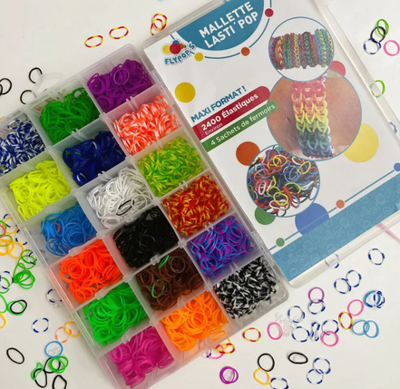 Contenu : environ 2400 élastiques multicolores + sachets de fermoirs