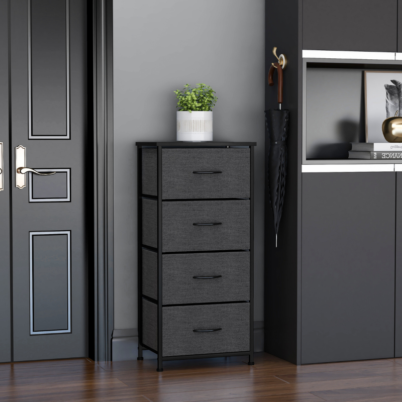 Doté de quatre tiroirs spacieux, ce meuble de rangement offre une grande capacité de stockage pour les vêtements, sous-vêtements, accessoires, linge de maison, documents, jouets ou objets du quotidien. Sa structure pliable permet un montage rapide sans outil et un démontage facile pour le transport ou le stockage.