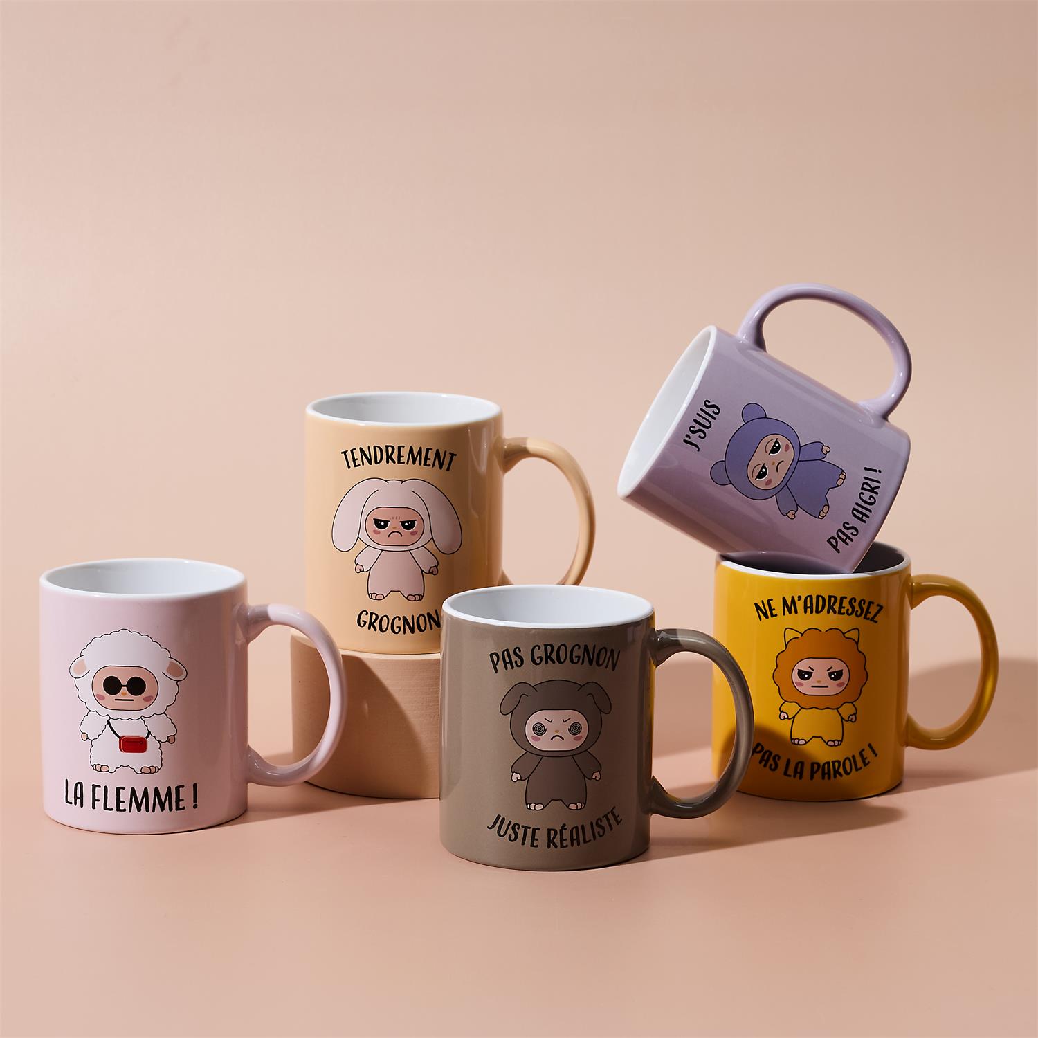 Affiche ton humeur du jour avec ces mugs Gromimis aussi drôles qu’attachants ! Chaque modèle met en scène un personnage grognon, flemmard ou râleur, avec un message plein d’humour pour accompagner ton café ou ton chocolat chaud. Avec sa contenance de 30 cl et son design coloré, c’est le compagnon idéal des petits déjeuners et pauses gourmandes.