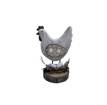 La figurine poule décorative est un élément idéal pour créer une ambiance champêtre et printanière. Avec son design en bois patiné et ses détails floraux, elle apporte une touche naturelle et authentique à la décoration.